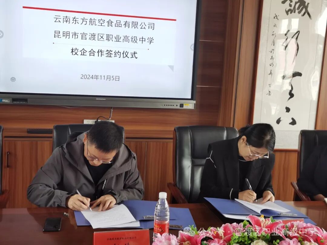 2024年11月5日,昆明市官渡区职业高级中学与云南东方航空食品有限公司在会议室举行了校企合作签约仪式。此次合作标志着双方在人才培养、技术创新等方面的深度合作迈出了重要一步。