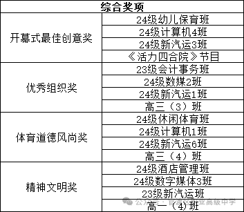 紧接着,学生发展中心文印副主任上台,宣布了体育道德风尚奖、优秀组织奖、最佳创意奖及精神文明奖获奖班级名单。这些奖项不仅是对运动员们赛场表现的肯定,更是对他们在比赛中展现出的团结协作、公平竞争精神的最高赞誉。