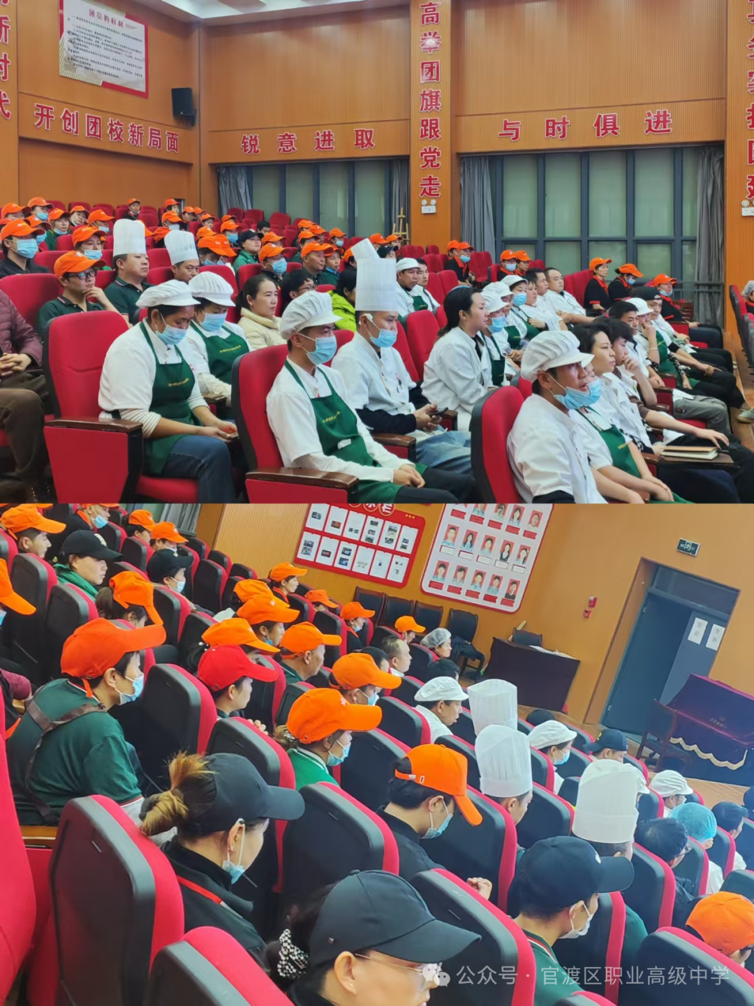 为了确保我校食堂食品安全管理水平持续提升,保障师生饮食健康与安全,我校于2024年11月8日(星期五)下午14:00至下午16:00,在尚诚楼报告厅开展了“学校食堂餐饮服务食品安全培训”为主题的官渡区职业高级中学食品从业人员培训活动。