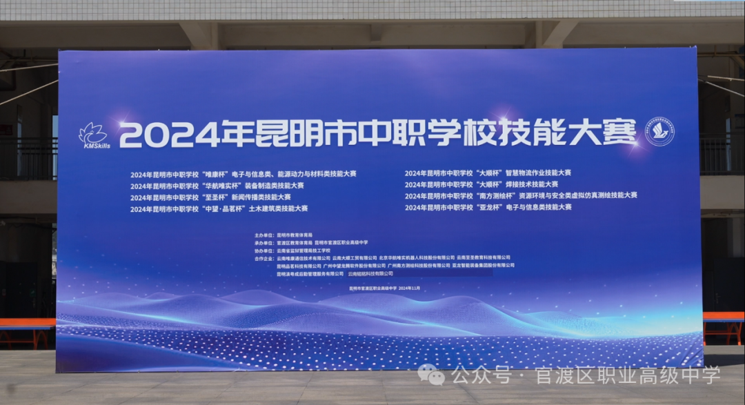 2024年11月16日,昆明市中职学校技能大赛在我校拉开帷幕,我校共承办电子与信息类、能源动力与材料类、智慧物流类、装备制造类、焊接技术类、新闻传播类、土木建筑类、资源环境与安全类等24个赛项,昆明市8所中职学校共计442人参与此次比赛。我校张毕祥总校长、杨燕校长、张冰书记等全体行政领导出席。