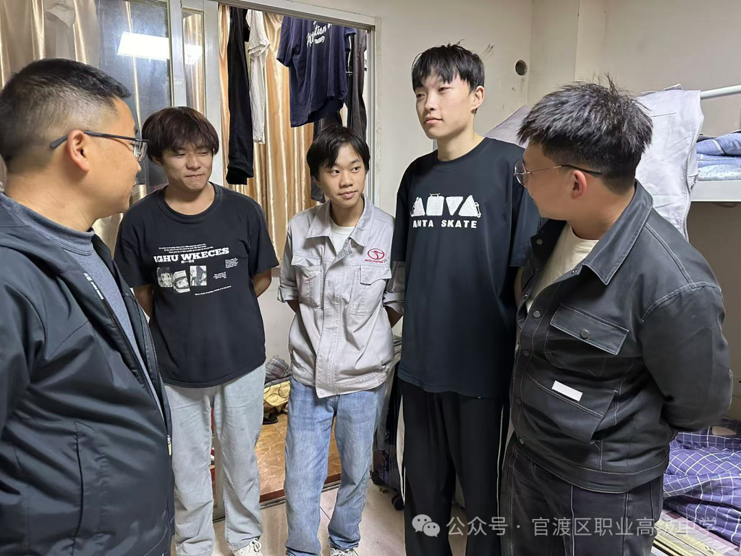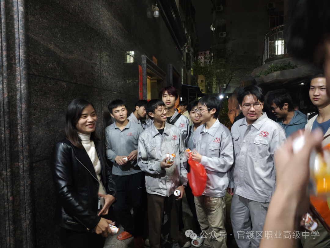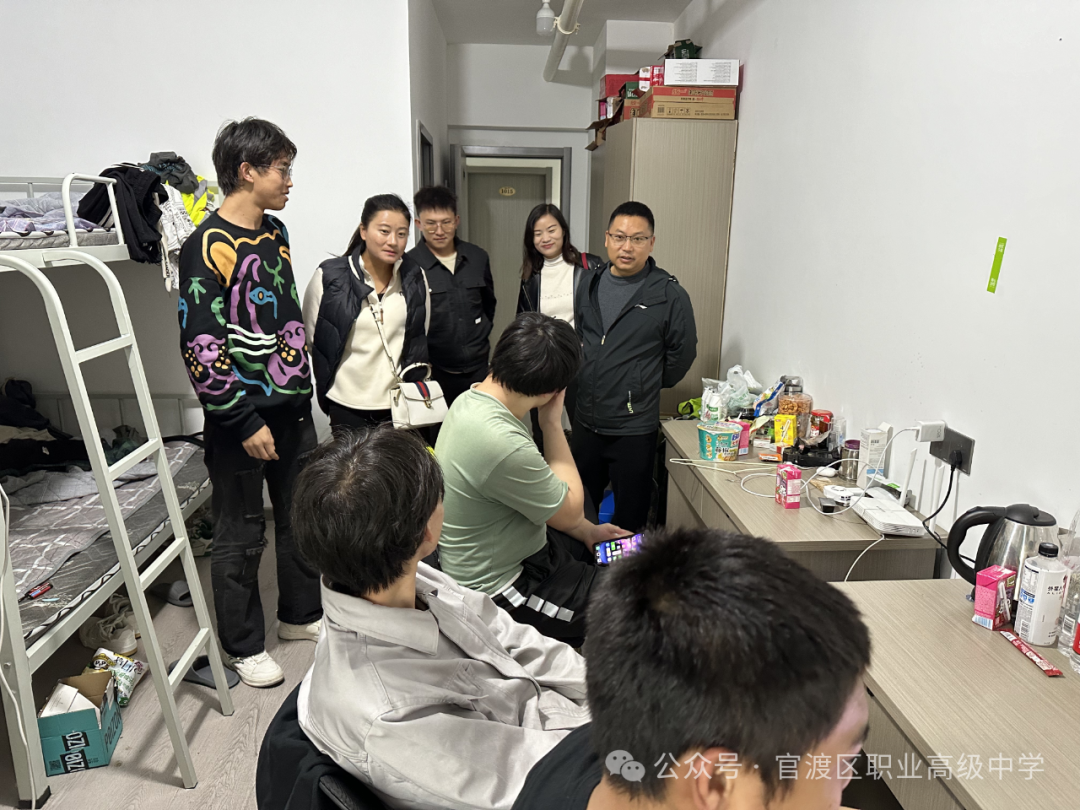 11 月 21 日晚21时 30 分,在驻厂教师吕耀、杜仲蕊的陪同下,教师团队深入学生宿舍,亲切看望刚刚结束白班工作的同学们。