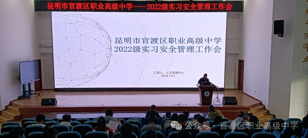 2024年12月4日下午4时30分,由学校人才发展中心组织各学部部长、实习管理员、2022级班主任,在任之厅召开“昆明市官渡区职业高级中学2022级实习安全管理工作会”。