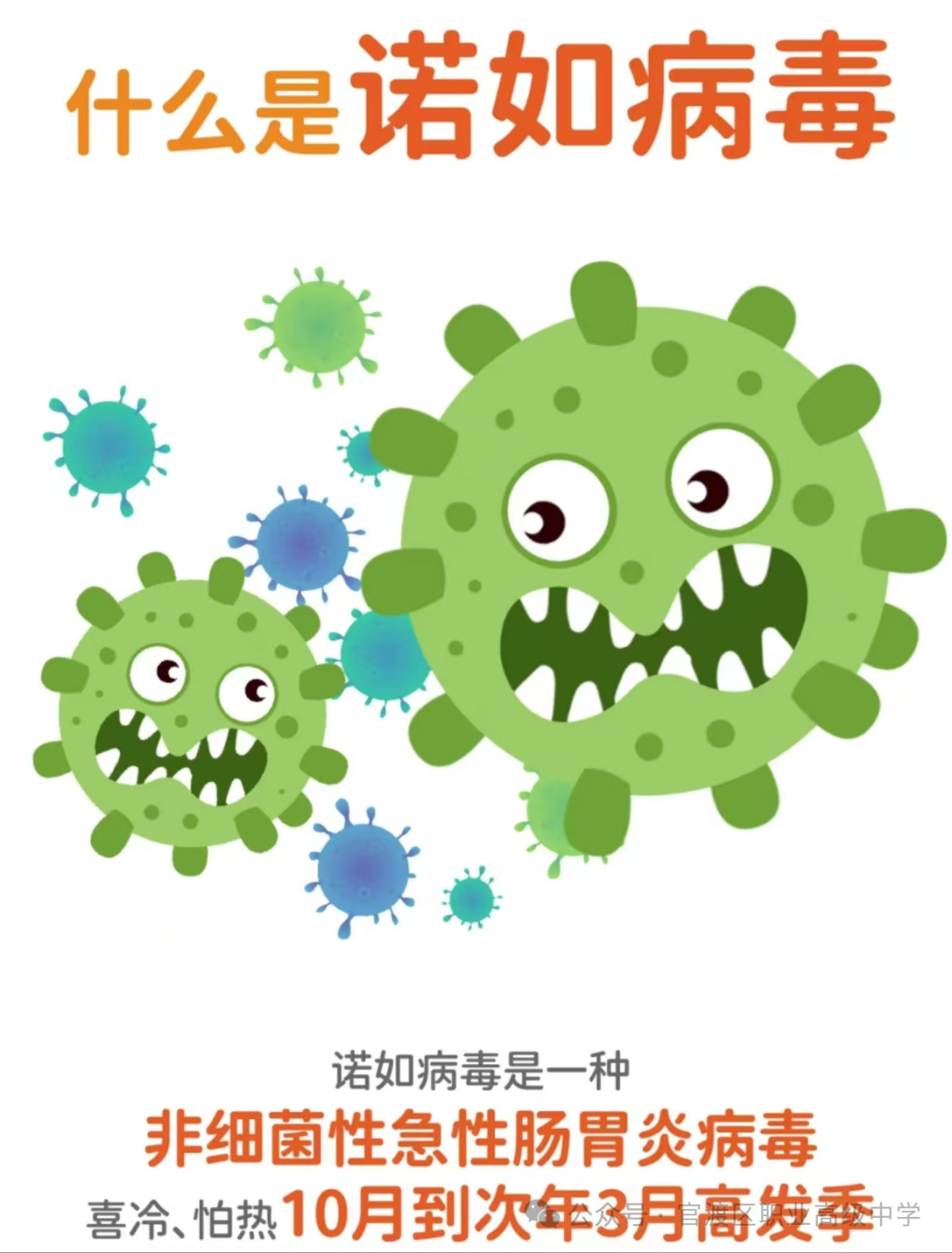 冬季气候多变,每年10月到次年3月是诺如病毒感染高发期。学校人群密集,是诺如病毒感染的高发场所。为切实保障孩子的身体健康,现与大家分享诺如病毒相关知识。