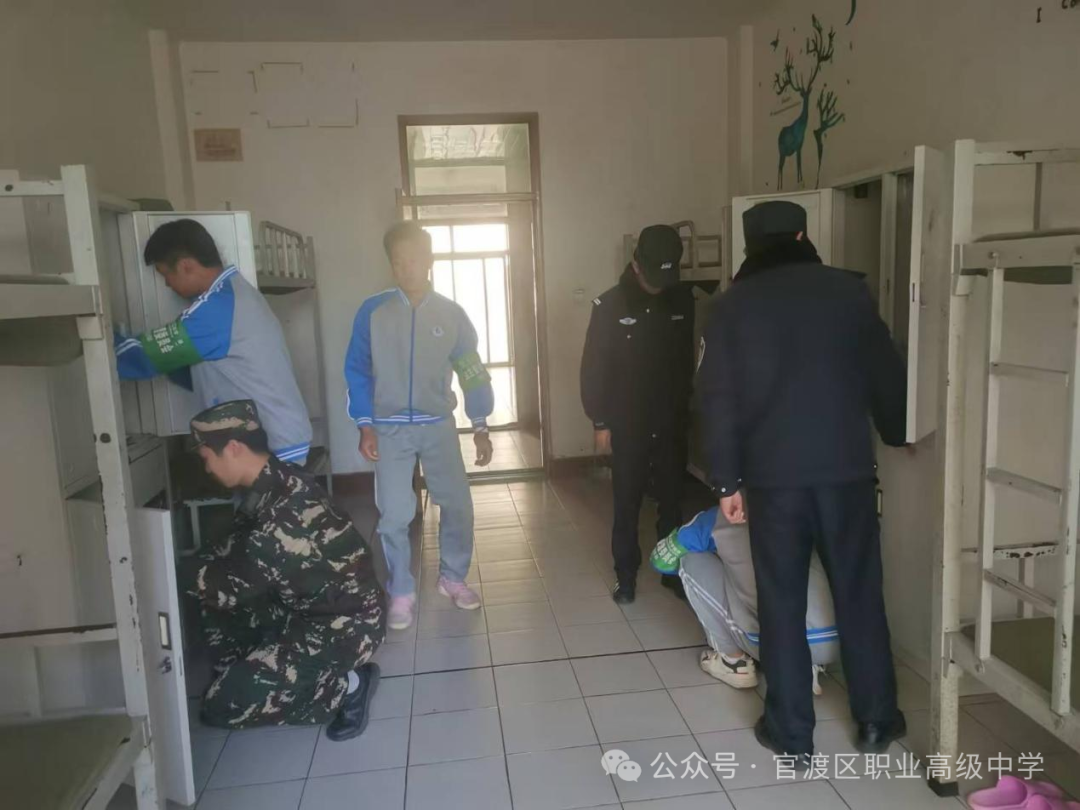 本次警校联动宿舍安全隐患大检查,有助于及时发现并消除我校宿舍内的潜在安全隐患,进一步提升了校园安全管理的实效性,增强了学生的安全意识和法律意识,为构建平安、和谐、稳定的校园环境奠定坚实的基础。未来,官渡区职业高级中学将继续与警方加强合作,建立健全校园安全长效机制,确保校园安全稳定,为广大师生提供更加安全、舒适的学习和生活环境!