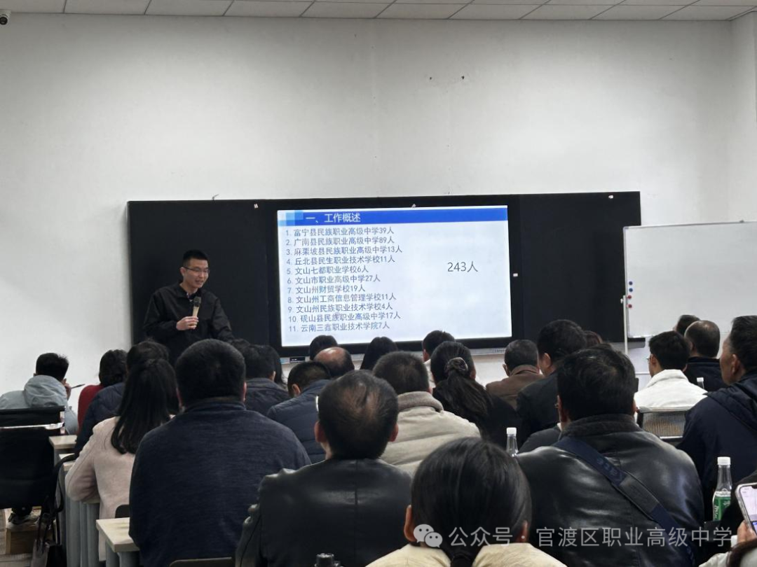 此外,昆明市盘龙区职业高级中学的陈德志老师进行了考务培训。陈老师首先对昆明市及文山州交通运输类考生的数量进行了详细分析,他从考前、考中、考后等多个环节入手,对考试准备工作进行了全面梳理和详细阐述,着重强调并带领各位来宾进行统考试卷的保密性分发工作,为参会人员提供了实用的操作指南。