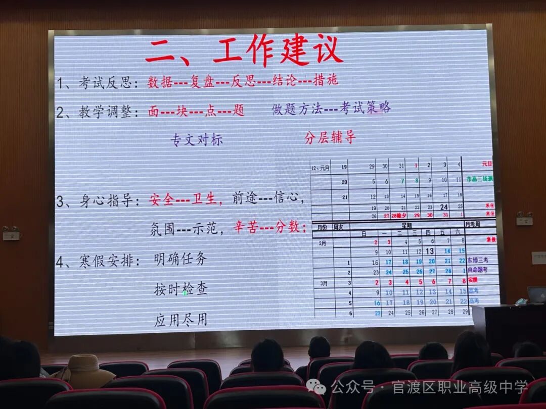 会议第二项,冷部长结合两次市统测成绩以及后续工作,为全体高三教师提出以下工作建议: