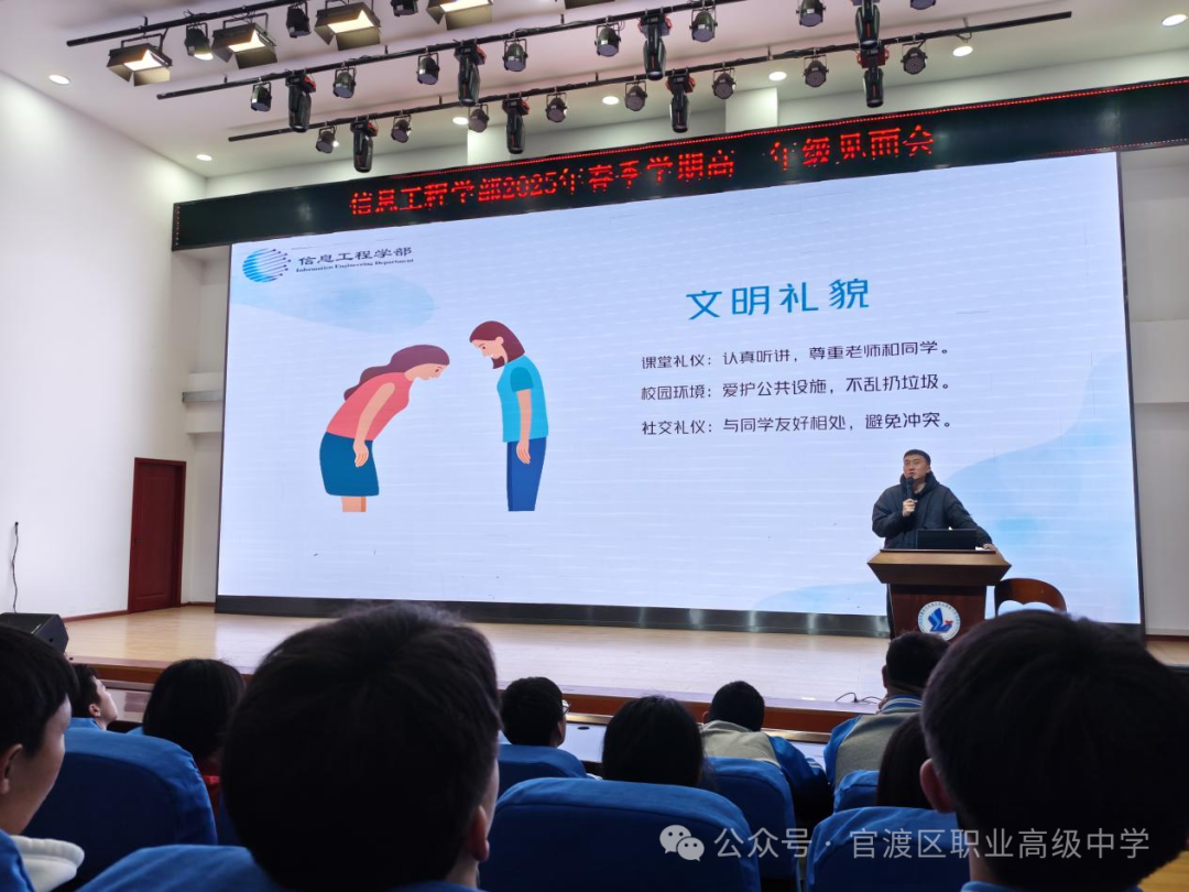 信息工程学部讯:新学期伊始,为帮助同学们顺利从“假期模式”切换到“开学模式”,进一步增强自身安全防范意识,提升自我保护能力,营造安全、和谐、文明的校园环境,2月24日至25日,信息工程学部开展了以“规范管理促发展,文明安全启新程”为主题的开学收心讲座。本次讲座由德育干事朱江帆老师主讲,学部全体学生和班主任参会。