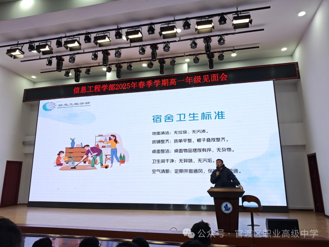 宿舍卫生以“优秀宿舍”动态评比为抓手,聚焦床铺整理、物品收纳及公约制定,引导学生自主规划轮值表、争创文明标杆。