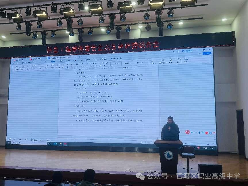 自管会作为学生自主管理的重要组织,其成员的选拔和工作制度也备受关注。本次会议详细介绍了自管会的工作制度,明确了成员的选拔标准和职责分工。朱老师表示自管会成员应该选拔品德好、责任心强和综合素质高的同学。其次,自管会主席、副主席、各部门部长及成员的职责分工清晰,避免工作推诿;新成员入职时将接受全面培训,帮助他们快速融入自管会。另外自管会成员将负责自习值班、宿舍值班、每日材料统计、表格制作、晚寝检查、早操出勤表等工作,确保宿舍管理的各个环节有序进行。