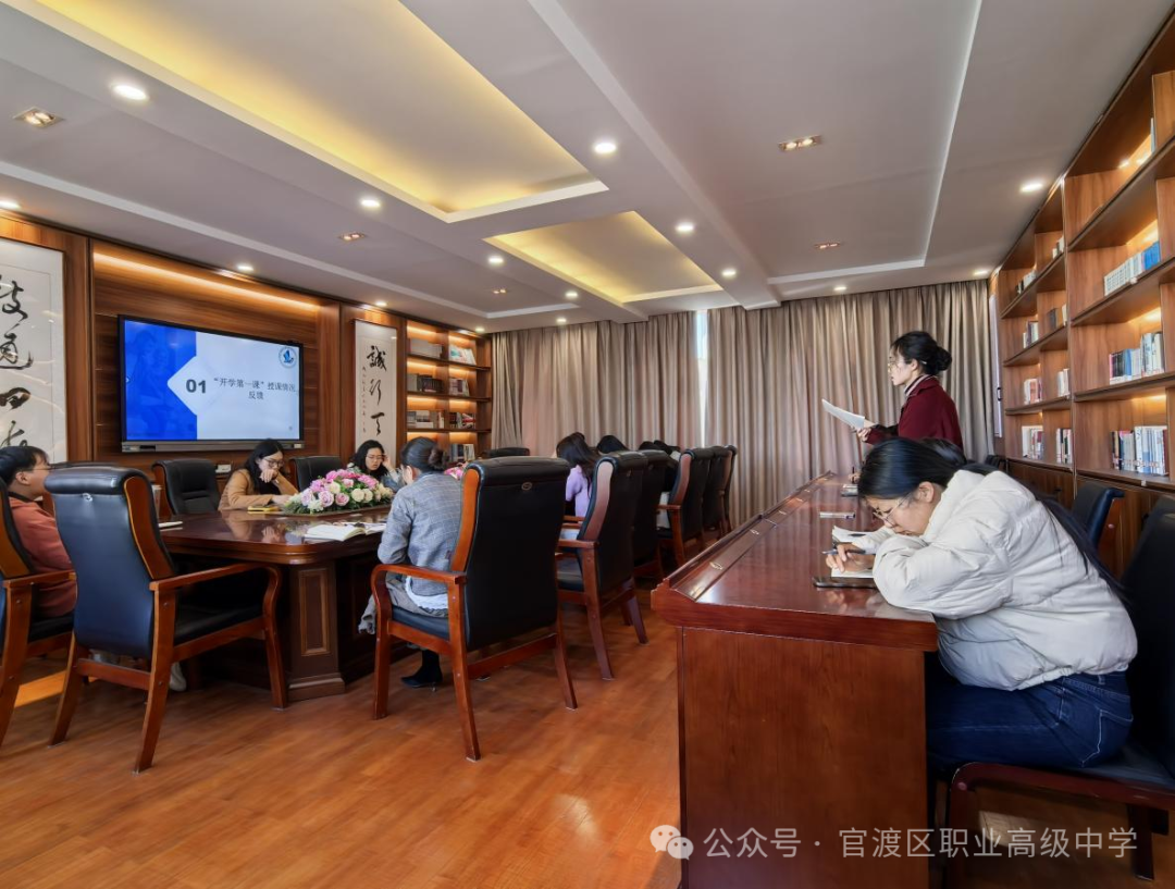聚焦“开学第一课”,共话教学新气。会议伊始,各教研组长分别汇报了本组新学期“开学第一课”的授课情况反馈。语文教研组提到,通过结合时政热点和非遗文化元素,丰富了课堂内容,激发了学生的学习兴趣;数字技术教研组则注重将人工智能技术融入教学,利用智慧教学手段提升课堂效率;专业课程教研组则通过实践案例教学,拉近了师生之间的距离感。各组的汇报不仅展示了新学期教学的良好开端,也为后续教学工作的优化提供了宝贵经验。