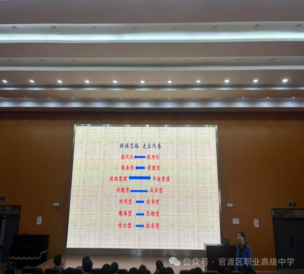 之后,冷部长谈到要“转化思路,走出内卷”。第一、现代化治理必须要有程序化,年级组长、教研组长有活动安排要及时向教学干事、德育干事等相关人员报备。第二、管理向服务型转换,班主任和年级组长要商量着共同把事情干好。第三、问题型向成长型转换,不要只看学生身上的问题,要多看学生的成长、变化,多鼓励。第四、时间型向效率型转变,备好课,用好课,提高课堂效率。第五、题目选择适度,题目的布置要跟讲课有关系,跟目标有关系,不做过多展开。