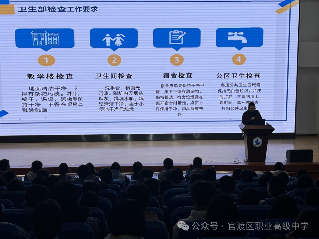 提升校园卫生水平,李然老师精心制定卫生管理方案。他凭借多年经验,拿着校园各区域图片,剖析卫生状况,指出细化评分细则是关键。教室卫生检查聚焦窗台凹槽、黑板边框等死角,垃圾分类明确各类垃圾投放要求,严格扣分标准,让评比有规可依。台下同学听得入神,认真记录,还有人主动探讨优化方向。