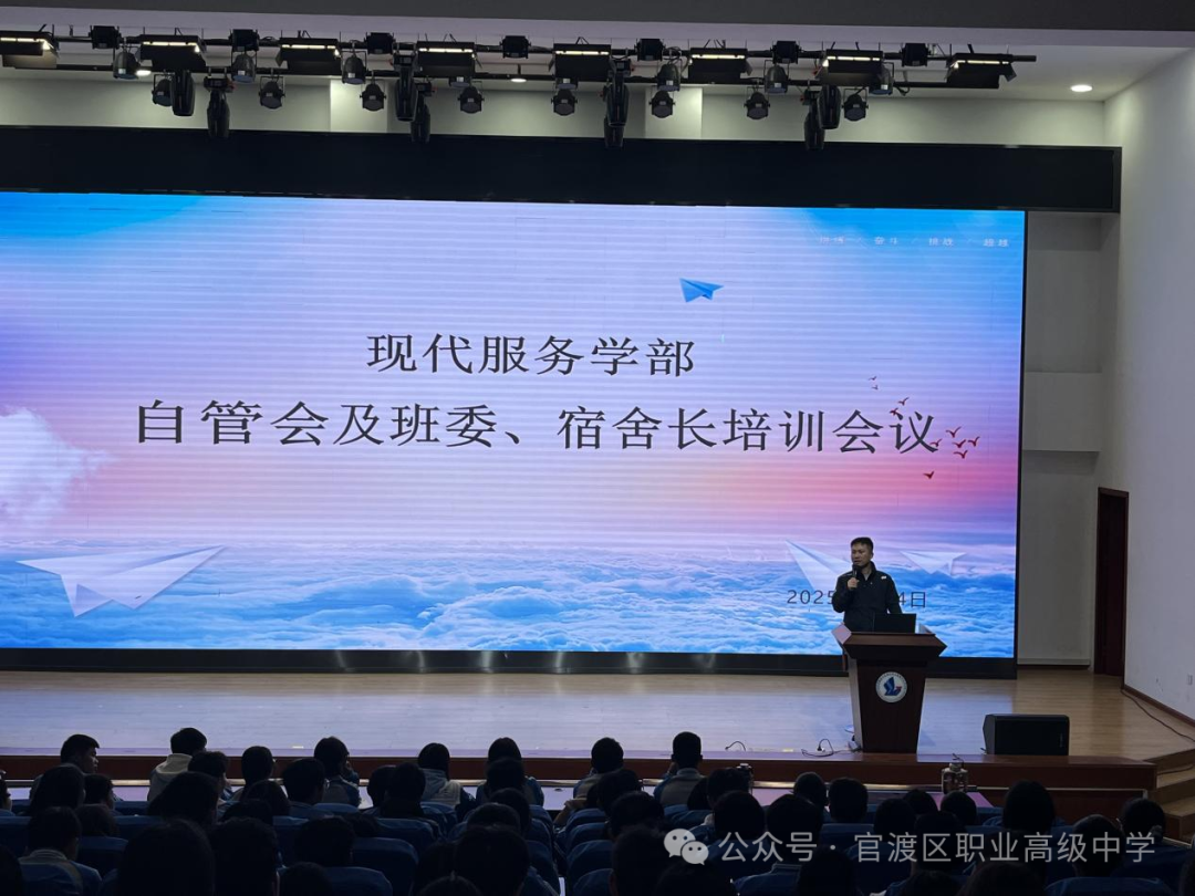 凝聚班干力量,开启奋进新程。新学期伊始,为强化学生干部队伍建设,提升履职能力与责任意识,现代服务学部于2025年3月4日召开了班委工作会议,全体班委齐聚一堂,共绘班级发展蓝图,会议由李响老师主持。会议内容涵盖纪检部、卫生部、学习部、活动部及班委培训五大群体。由李响老师主持,培训以“理论赋能+实践指导”为主线,聚焦岗位职责与团队协作,助力学生干部高效服务师生。