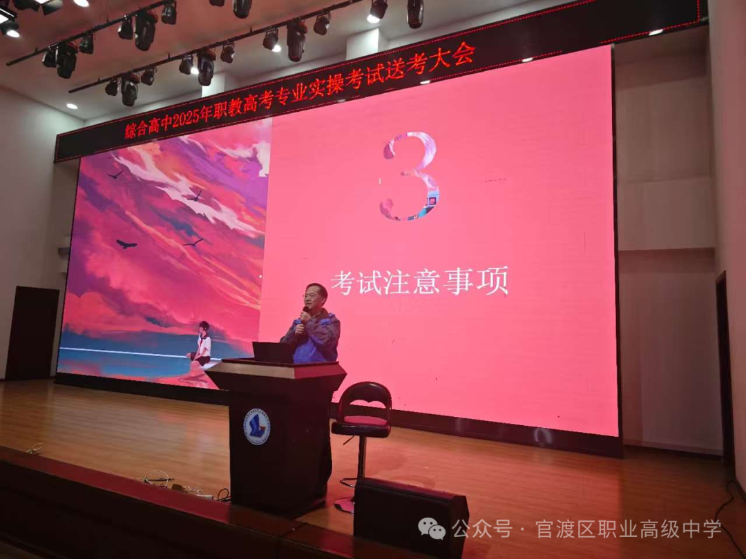 百舸争流,奋楫者先;千帆竞发,勇进者胜。2025年3月6日晚,在这决战高考的关键时刻,我校综合高中学部召开了高三高考考前送考会,大会由陈晓艺老师主持,旨在为即将踏上考场的勇士们加油鼓劲,同时强调考风考纪,提醒考前注意事项,确保每位考生都能以最佳状态迎接高考。