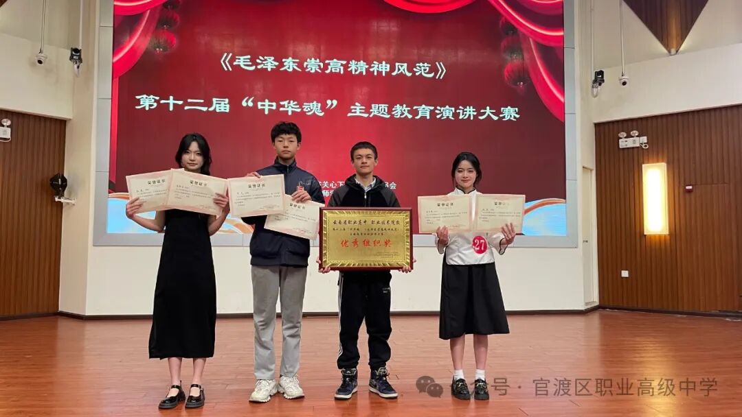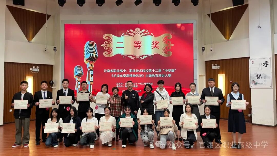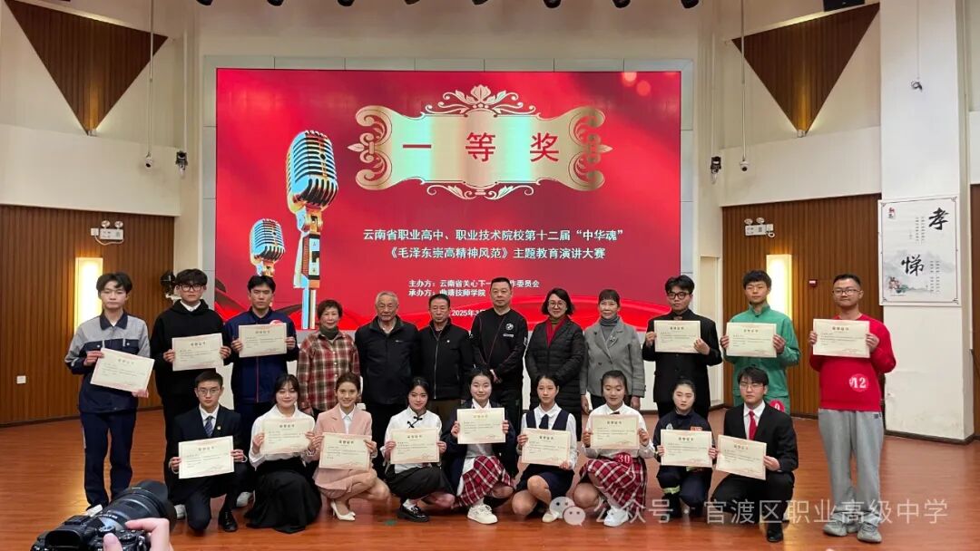 昆明市官渡区职业高级中学学子在第十二届“中华魂”主题教育演讲大赛中喜获佳绩昆明市官渡区职业高级中学学子在第十二届“中华魂”主题教育演讲大赛中喜获佳绩2025年3月22日,云南省第十二届“中华魂”主题教育演讲大赛在曲靖师范学院圆满落幕。我校选派的3名学子在比赛中表现优异,他们凭借出色的演讲技巧和深刻的思想内涵,稳健的台风和真挚的情感打动了评委。最终,傅晨希同学和李雨韩同学获得一等奖,奚梓洁同学获得二等奖。陈月、赵倩、孙亮老师获评“优秀指导教师”。我校获评“优秀组织奖”。此次比赛以“毛泽东崇高精神风范”为主题,旨在引导青少年坚定理想信念,传承红色基因,争做时代新人。我校三位同学紧紧围绕主题,结合自身经历和感悟,用生动的语言和饱满的热情,抒发了对党、对祖国、对人民的热爱,展现了新时代中职生的精神风貌和责任担当。此次获奖,不仅是对我校学生综合素质的肯定,更是对我校德育工作和校园文化建设成果的充分展示。我校将继续坚持立德树人根本任务,积极开展形式多样的主题教育活动,引导学生树立远大理想,锤炼品德修为,努力成长为德智体美劳全面发展的社会主义建设者和接班人。来源|学生发展中心作者|孙亮/文字 孙亮/图片 排版|王园园责编|王园园初审|陈晓艺 文 印终审|郜 猛 1END