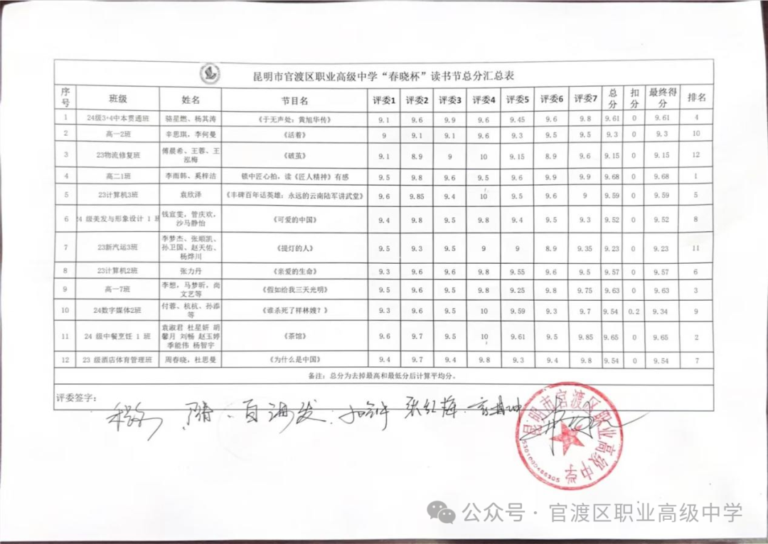 昆明市官渡区职业高级中学第十二届“春晓杯”读书分享比赛圆满落幕!