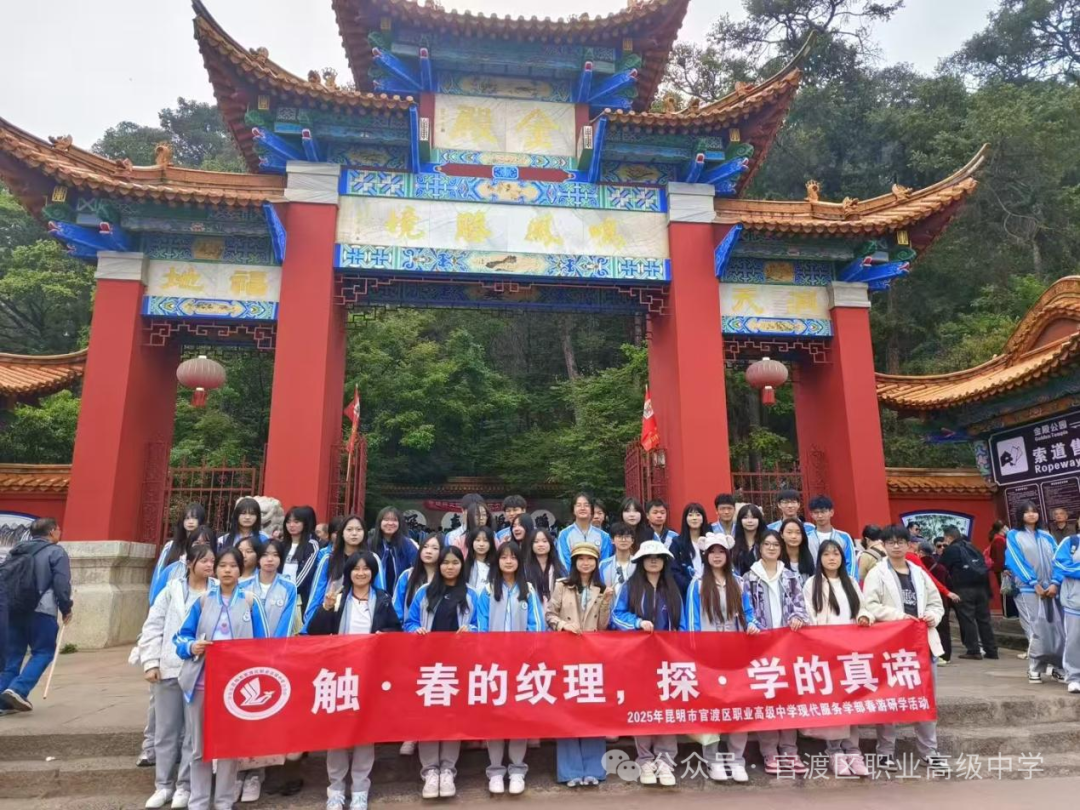 学生发展中心讯:为深化实践育人理念,拓宽学生知识视野,提升综合素养,2025年4月9日,昆明市官渡区职业高级中学组织全体师生前往云南省金殿森林公园开展“探历史文脉,研自然万象”主题春游研学活动。活动以“研”为核心,将课堂延伸至自然与人文交织的广阔天地,通过沉浸式学习、小组协作与探究实践,让学生在行走中感受历史厚重,在观察中体悟生态奥秘。