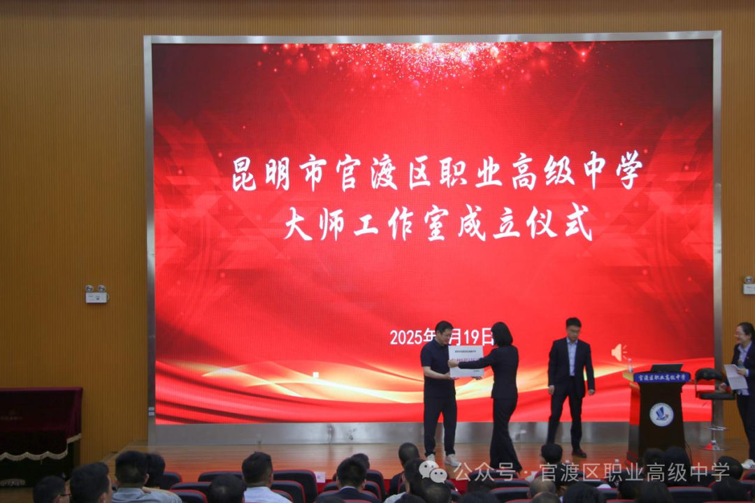 紧接着,官渡区职业高级中学作为承办方,举行了简短而庄重的大师工作室成立仪式,杨燕校长为邸玉峰总工程师授牌。邸玉峰大师工作室在官渡职中落地,是深化产教融合、创新人才培养模式的重要举措,对提升教育教学质量,服务区域产业发展具有重要意义。