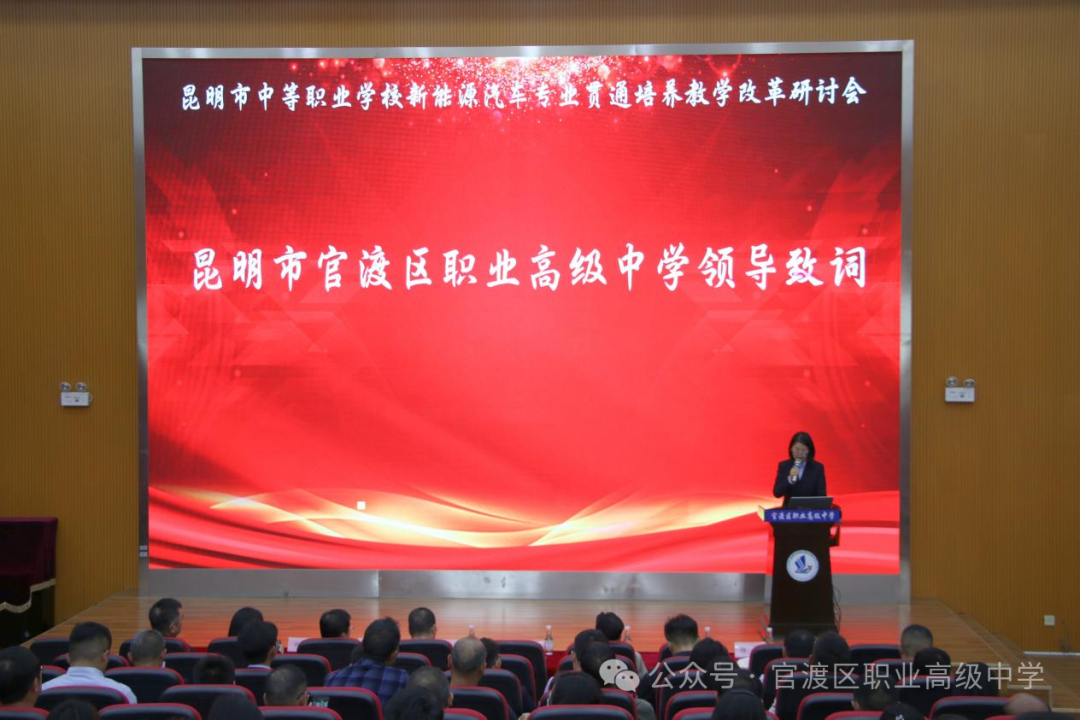 贯彻落实《云南省职业教育提质效实施方案》,加快推进现代职业教育体系建设,深化中高本贯通培养模式改革,提升新能源汽车专业的教学质量与人才培养水平,由昆明市教育科学研究院与昆明市交通运输类专业教师专家指导委员会联合主办,昆明市官渡区职业高级中学承办的“中等职业学校新能源汽车专业贯通培养教学改革研讨会”于2025年4月19日在官渡区职业高级中学新能源汽车产教融合基地顺利召开。