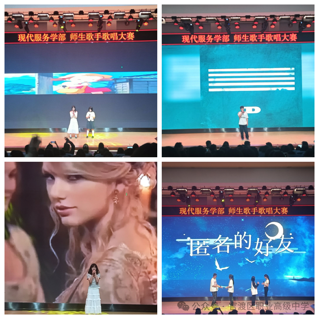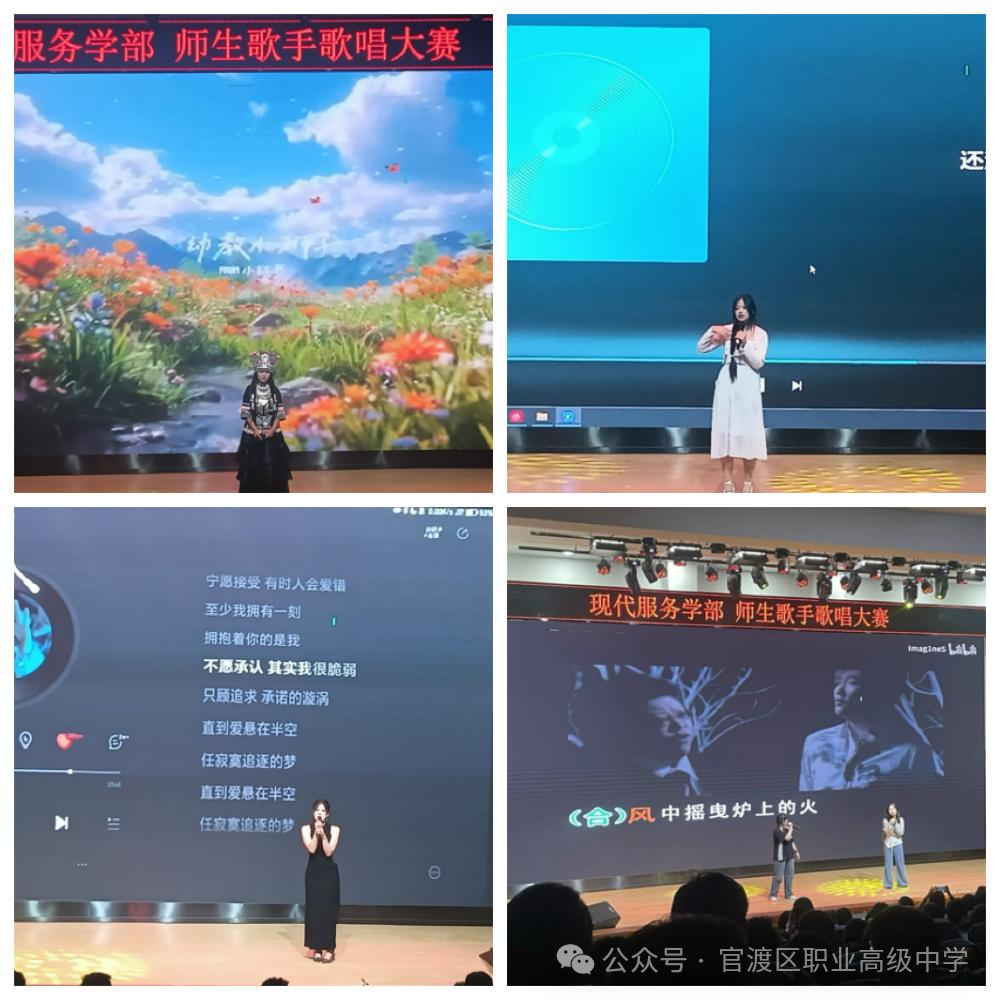 “歌唱是心灵在振动,而音乐是空气在跳舞”,在这春意盎然,万物复苏的美好季节,为秉持官渡职中“厚德、重技、励志、进取”的校训,丰富校园文化生活,增强学生的艺术修养和表现力,搭建学生展示自我的舞台,现代服务学部于2025年4月26日晚19:00-21:30举办了第一届师生歌手大赛,鼓励学生展示才艺,激发热情,增强自信心,为学部营造积极、健康、向上的氛围。