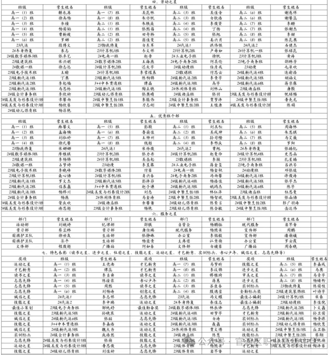 学生发展中心讯:四月份以来,德育工作稳步开展、活动丰富多彩,按照班级自荐、学部推荐、学生发展中心审查的程序,涌现了一批先进个人和先进集体。鉴于此,2025年4月28日上午,官渡区职业高级中学特举行“奋进逐光,卓越领航”——四月争先创优表彰活动。