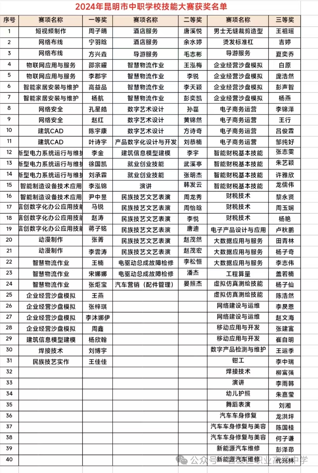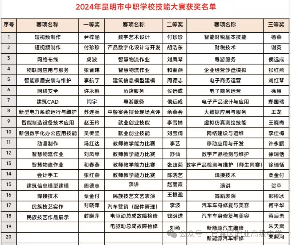 星标关注《官渡区职业高级中学》微信公号