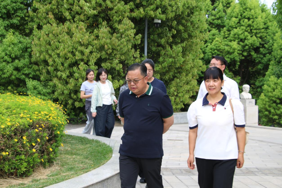 随后,团队移步名人雕塑长廊,杨秋副校长以职教先驱事迹为引,阐释“尚长育人”理念,并透过诸子百家文化长廊中“厚德、重技、励志、进取”的校训浮雕,展现传统文化与现代职教精神的深度融合。她提到:“文化育人不仅是校风建设的基础,更是‘办有故事的学校,做有温度的教育’这一职业愿景的具象实践。”