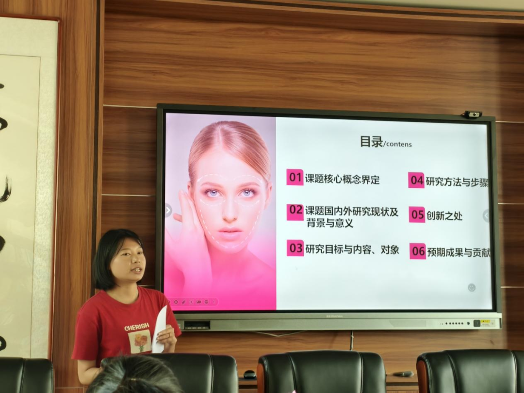 最后由刘红老师汇报《中职美容专业面部护理课程中客户服务情景模拟教学实践分析》课题,通过仿真工作场景,设计客户投诉、肤质诊断等教学情境,着力提升学生职业素养。课题组拟采用"设计-实施-评估"三阶段研究法,建立包括技能考核、客户满意度评价在内的多元评价体系。