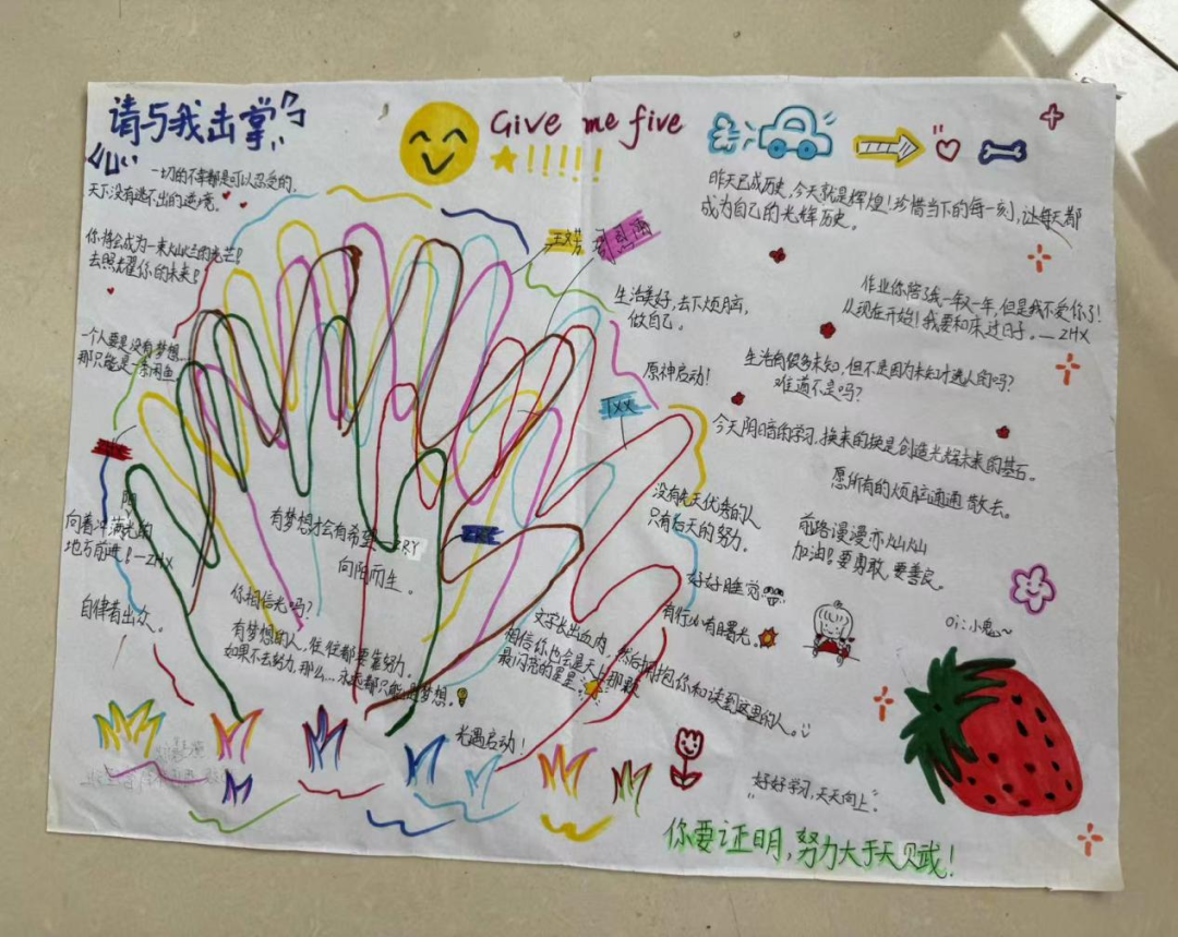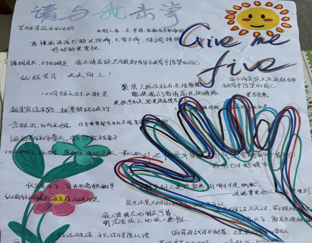 同学们在纸上描绘手掌轮廓,书写姓名与人生箴言,并在班级内传递。通过掌印的接力,感受同窗支持的力量,有效增强班级凝聚力,深化同窗情谊。