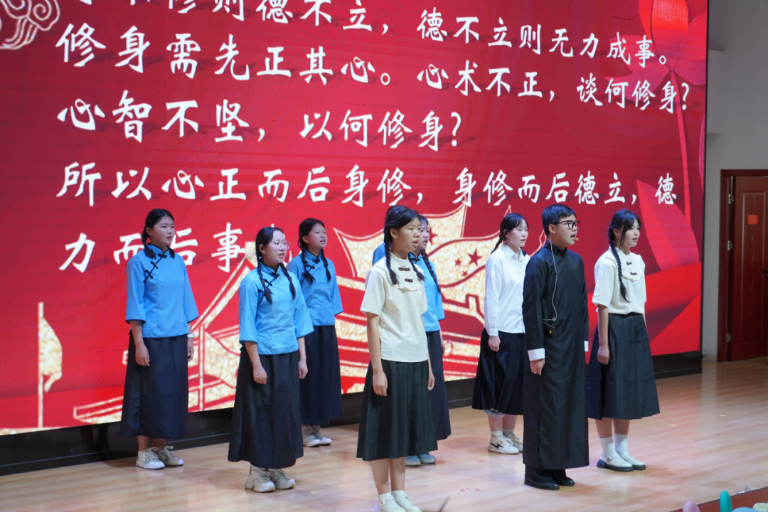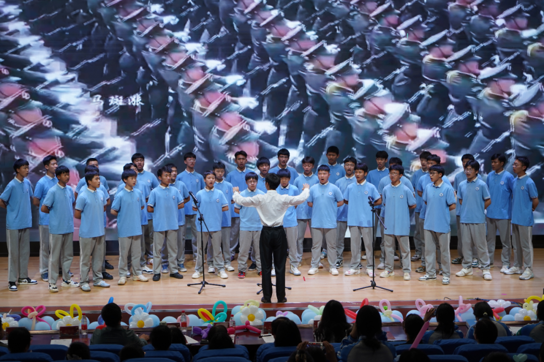 歌咏其声,舞动其容,演绎其魂。五大学部经过角逐选拔出十一支班级参赛队伍,加上各学部的节目以及综合高中学部、现代服务学部选送的舞蹈《化蝶》《又见红楼梦》以及校学生会《强军战歌》、足尖舞蹈社《春风里》、校合唱团《世界赠予我的》共二十一个精彩纷呈的表演轮番上演。