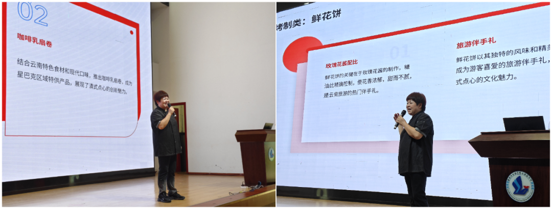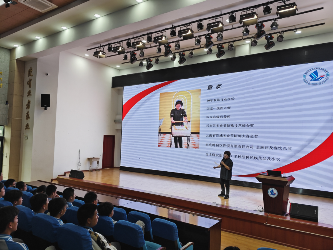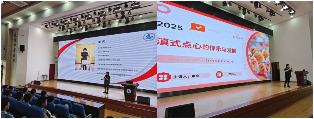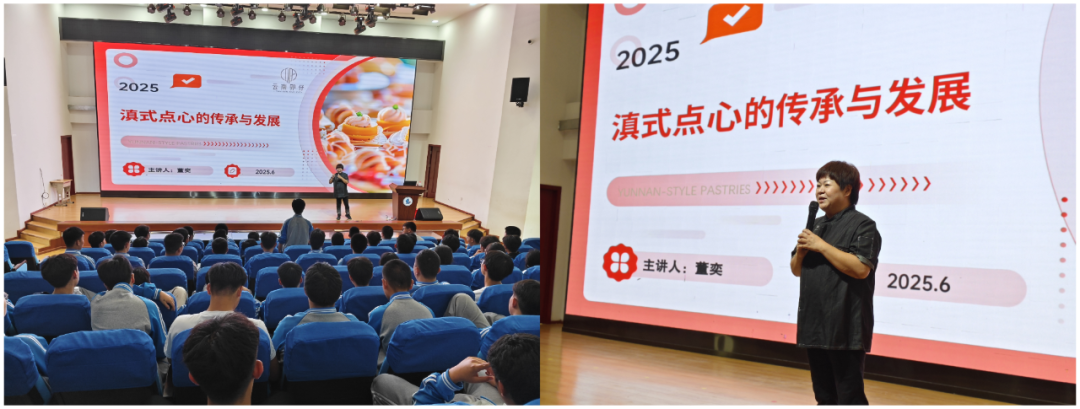 2025年6月20日上午,现代服务学部中餐烹饪专业二年级全体师生齐聚一堂,共同参与了本学期"名师大讲堂"系列课程的精彩讲座。本次活动由学部与云南卯仔餐饮管理有限公司共同组织。主讲老师是国家一级面点师董奕大师,其拥有30年餐饮行业经验,曾获云南省美食节特殊技艺师金奖。董老师以《滇式点心的传承与发展》为主题,为同学们带来了一场内容丰富、形式生动的专业课程。