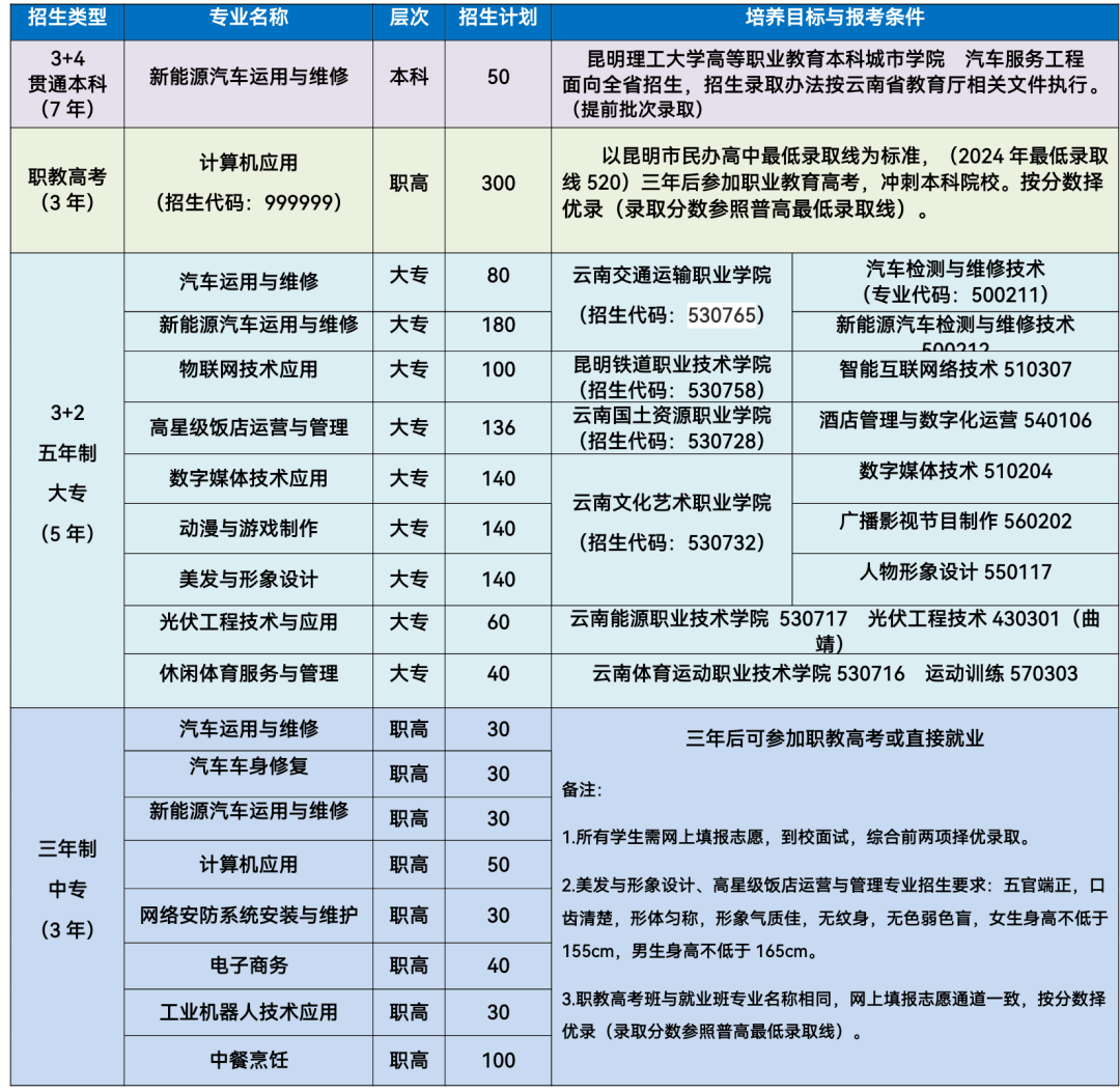 昆明市官渡区职业高级中学招生计划表