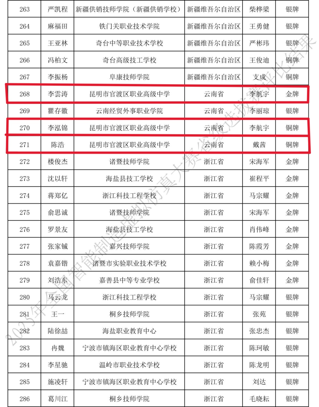 在云南省教育厅主办的全国智能制造虚拟仿真大赛云南省选拔赛中,我校2025级中职学生李雲涛、李泓锦、陈浩凭借扎实的专业技能,分别斩获金牌和铜牌,为学校赢得殊荣。