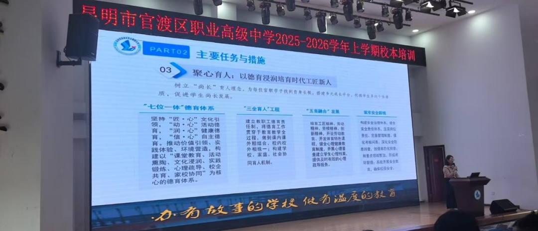 杨燕校长以“聚智赋能,聚力攻坚,聚心育人”为核心,全面解读了学校新学期的发展任务、具体举措及工作思考。杨校长回顾了学校过去一学年取得的成绩,分析了当前面临的机遇与挑战,并对新学期的教学工作、德育工作、师资建设、校园安全等重点工作进行了详细部署。她强调,要汇聚全体教职工的智慧与力量,攻坚克难,不断提升教育教学质量,落实立德树人根本任务,为学校的持续健康发展而努力奋斗。杨校长的讲话鼓舞人心,让全体教师明确了新学期的奋斗目标与工作路径。