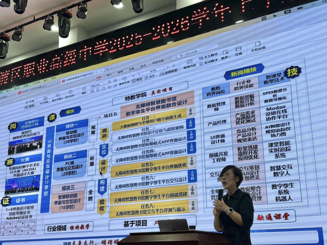 培训伊始,特邀专家肖海文老师带来了以“‘岗课赛证’课程重构为核心的国赛获奖作品分析”的专题讲座。肖老师结合大量国赛获奖案例,深入浅出地剖析了如何从选题中挖掘备赛新思路,强调选题的时代性、创新性与实践性;随后,她聚焦名匠大师成长规律的设计思路与方法,引导教师们思考如何将工匠精神的培育融入课程设计与教学实践;最后,肖老师重点阐述了如何聚焦产业前沿数字转型挖掘重构课程内容,使教学更贴近产业发展需求,培养符合时代要求的高素质技术技能人才。肖老师的分享为我校课程改革与教学创新提供了宝贵的思路与借鉴。