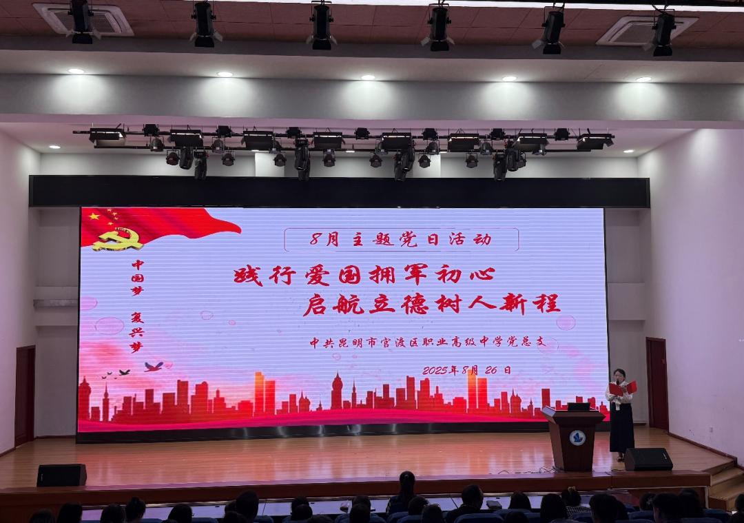 为了深入贯彻习近平强军思想和关于教育的重要论述,紧紧围绕立德树人根本任务,将爱国拥军教育融入活动全过程。传承红色基因,厚植爱国情怀,强化拥军意识,深刻认识爱国拥军的重大意义,激发爱国热情和报国之志,为培养德智体美劳全面发展的社会主义建设者和接班人奠定坚实的思想基础,助力在新的征程上更好地践行爱国拥军初心,推动立德树人工作迈向新台阶。2025年8月26日,昆明市官渡区职业高级中学党总支召开“践行爱国拥军初心,启航立德树人新程”八月份主题党日活动,本次活动由第二党支部第二党小组策划并主持,学校全体党员教师一起参加。