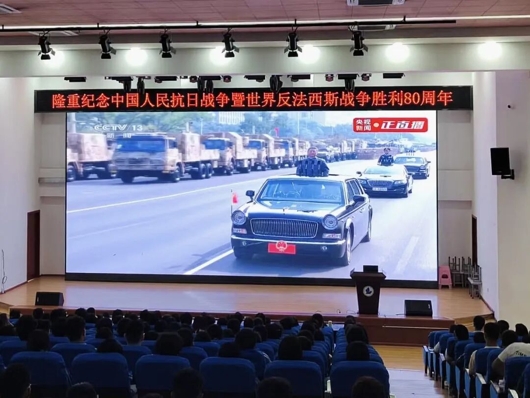 2025年9月3日上午9:00,纪念中国人民抗日战争暨世界反法西斯战争胜利80周年大会在北京天安门广场隆重举行。为了弘扬伟大爱国主义精神、伟大抗战精神,从中汲取开创未来的智慧和力量,我校组织师生集中观看了大会直播盛况。