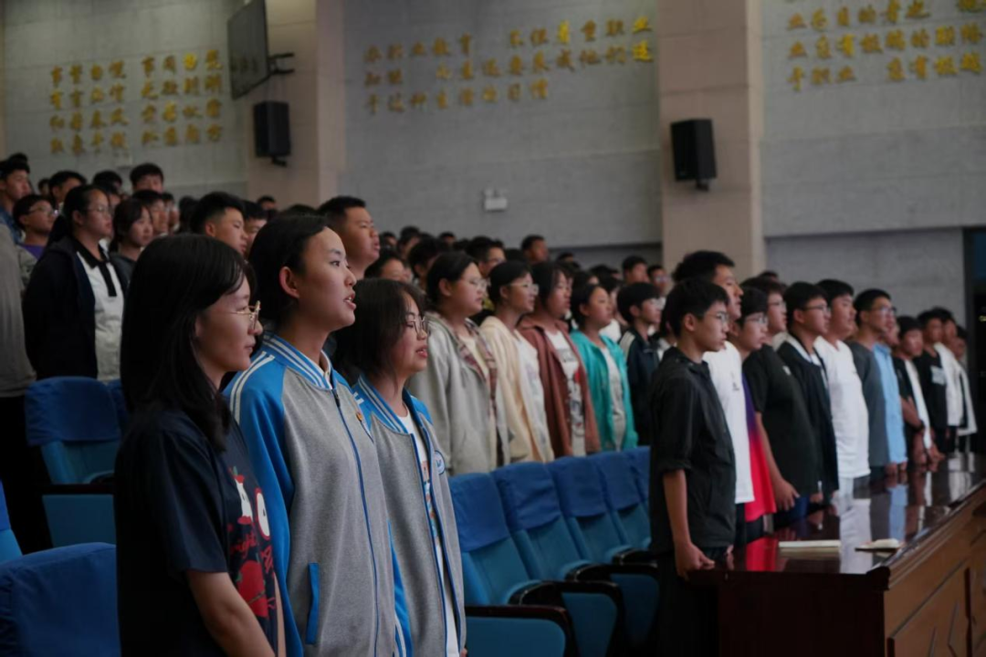 讲座在庄严的国歌声中拉开帷幕,全体师生肃立齐唱国歌,激昂的旋律激荡着每个人的爱国情怀。随后,同学们共同唱响校歌,在悠扬的歌声中凝聚对学校的归属感与认同感。在陈老师的带领下,全体新生庄严宣读学生誓词,用铿锵的誓言许下了恪守规范、奋发向上的坚定承诺。现场师生还一同诵读了社会主义核心价值观,将国家价值目标、社会价值取向和公民价值准则深深烙印于心,为筑牢信仰之基、规范言行提供了根本遵循。