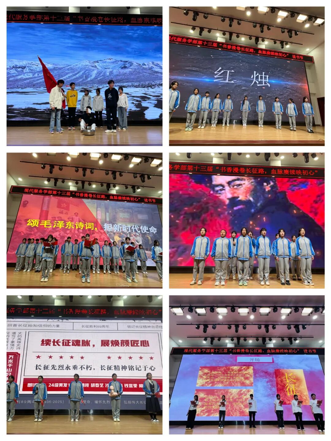 比赛现场,各班选手以声传情,以文载道,将长征精神与时代脉搏紧密相连。24酒店班的《一束光》,以表演与演讲交织的形式,循着那束穿越历史的光芒,深情回望肖楚女以生命践行信仰的一生。字字句句间,那份为家国、为理想燃烧自我的赤诚,如火焰般在舞台上跳动,令人动容。25酒店班的《〈长征〉以书为径,探寻毛泽东与长征之路》,则以真情演讲为引,带领观众走进那段波澜壮阔的历史。毛泽东同志的雄才大略与领袖风范,在抑扬顿挫的讲述中栩栩如生,让人从中汲取无尽的精神力量。25中餐烹饪1班的课本剧《雪山上的“硬菜”》,别出心裁地将青稞饼化为情感的载体。在艰苦卓绝的长征路上,他们用幽默与温情演绎出“苦中作乐”的革命乐观主义精神,令人在笑声中品味那份坚韧与甘甜。23幼儿保育班的《赓续长征魂,吾辈新征程》,则巧妙地将长征精神与幼儿保育专业相结合。她们以跨越时空的视角,讲述如何在新时代的征程中,将红色基因融入日常点滴,用爱与责任守护童心,让长征精神在幼教事业中薪火相传。每一个节目都如星辰般闪耀,每一段讲述都如春风般润心,赢得了在场师生如潮的掌声。