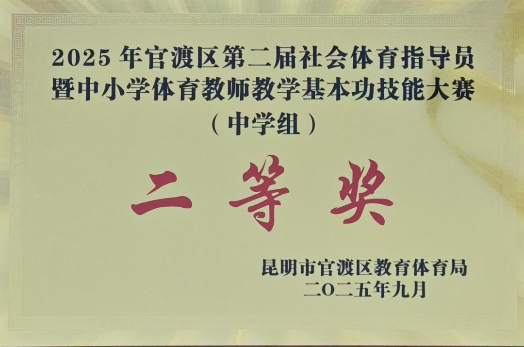 我校在2025年官渡区第二届社会体育指导员暨中小学体育教师教学基本功技能大赛中荣获中学组团体二等奖!