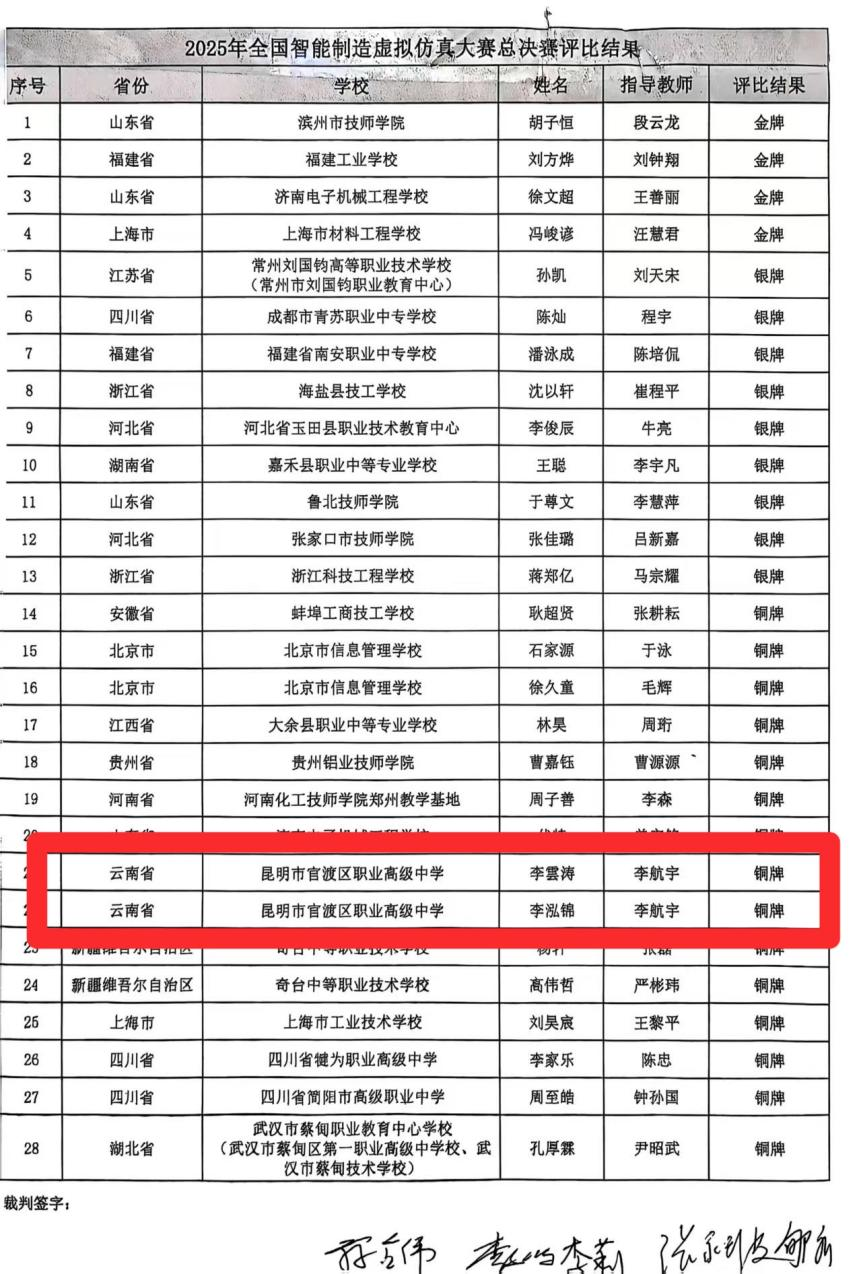 这份荣誉的背后,凝结的是师生团队数月如一日的坚持与付出。在指导教师李航宇的全程陪伴与专业引领下,两位同学开展了系统而高强度的集训。他们不仅攻克了虚拟仿真等核心技术难点,更反复打磨各类复杂工况下的操作流程。从晨光初露到夜深人静,从理论推演到实操验证,每一个指令都经过反复斟酌,每一个动作都力求精准流畅。学部领导也为他们量身定制训练方案,在强化专业技能的同时,注重心理韧性与应变能力的培养,为参赛学子构筑起坚强的技术后盾与精神支撑。此次获奖是我校持续推进教育教学改革、深化产教融合的重要成果体现。学校始终秉持“以赛促教、以赛促学、以赛促改”的育人理念,积极通过竞赛平台推动专业建设与产业需求对接。展望未来,我校将继续紧跟智能制造技术发展前沿,不断优化人才培养体系,加强高水平实训基地建设,为更多学子搭建实现技能报国、人生出彩的广阔舞台,为行业转型升级与高质量发展持续注入“官职力量”。