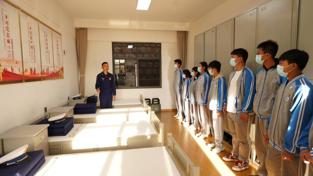 走进消防员宿舍的那一刻,此起彼伏的惊叹声便在队伍中响起。“快看!这被子叠得跟豆腐块一样!”一位同学指着那整齐的床铺,向同伴发出惊呼。学生发展中心的党员教师们适时引导团员青年观察思考:这些方寸之间的严谨,正是消防救援队伍战斗力的细微体现。同学们在轻声交流中感悟到,原来纪律不是冰冷的条规,而是融入日常的自觉。