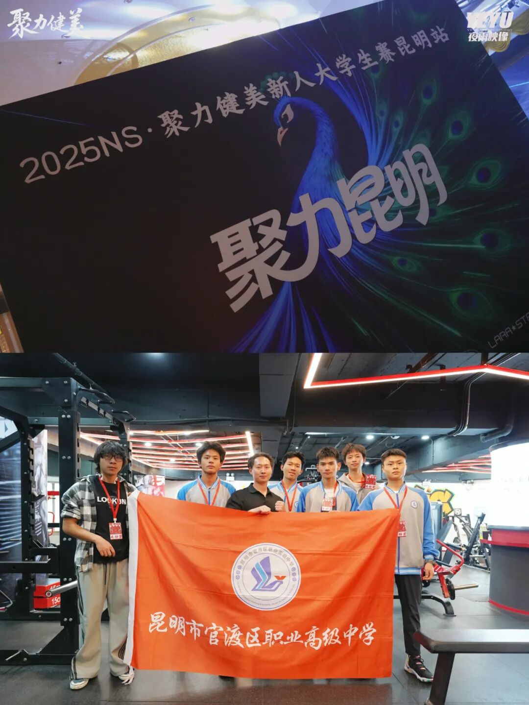 2025 年 11 月 17 日,聚力新人大学生健美全国公开赛(昆明站)如期开赛。在现代服务学部休闲体育专业负责人黎滟隆老师的带队下,我校 5 名学子凭借长期坚守的训练热情与不懈毅力,在赛场绽放光芒,同时多专业学子以坚持筑牢服务后盾,共同书写 “力与美” 的精彩篇章。