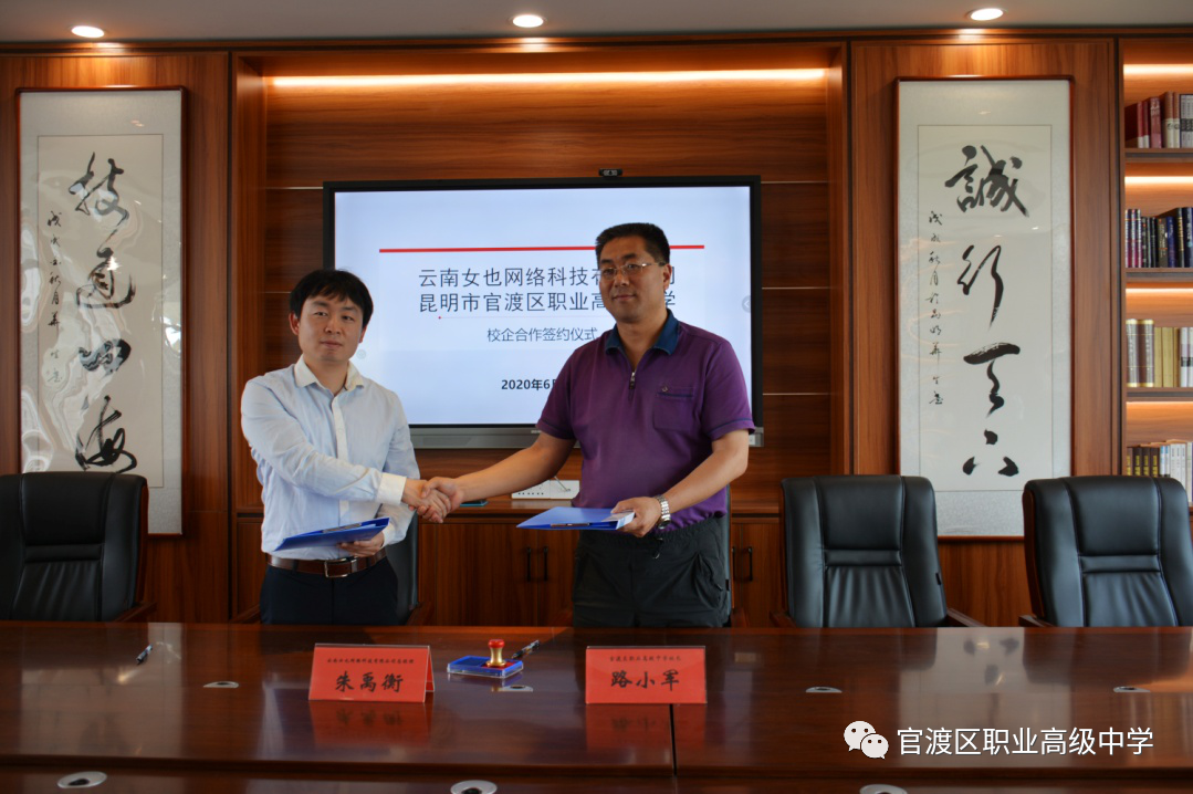 “同其心,一其力 ,勇者不得独进,怯者不得独退。夫五指之更弹,不若卷手之一挃;万人之更进,不如百人之俱至也。”为了进一步深化校企合作、产教融合,将校中厂、厂中校发展理念迈向新的阶段,构建职业教育开放衔接的育人新模式,使职业教育与现代经济发展相契合,2020年6月2日,官渡区职业高级中学与云南女也网络科技有限公司在官渡区职业高级中学尚德楼三楼会议室举行签约仪式。