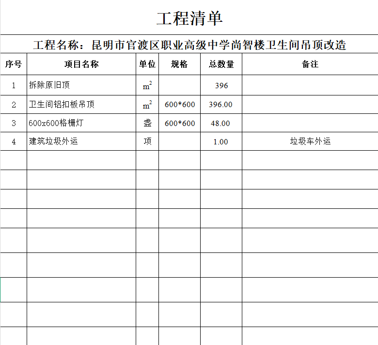 昆明市官渡区职业高级中学尚智楼(男生宿舍)洗手间吊顶改造项目