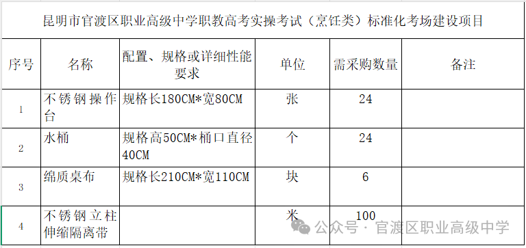 昆明市官渡区职业高级中学职教高考实操考试(烹饪类)标准化考场建设项目