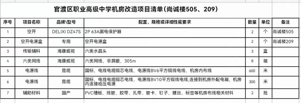 昆明市官渡区职业高级中学尚慧楼201、301机房搬迁项目