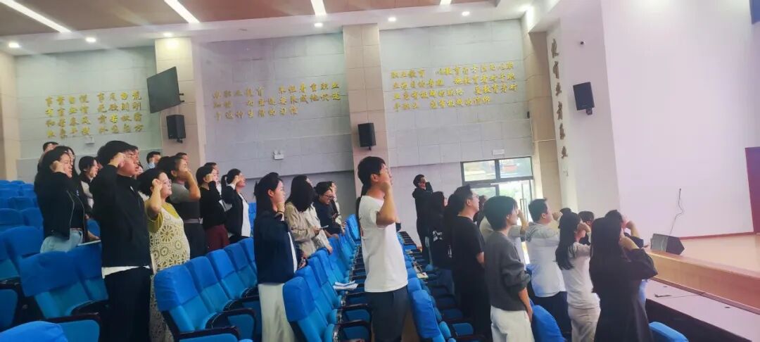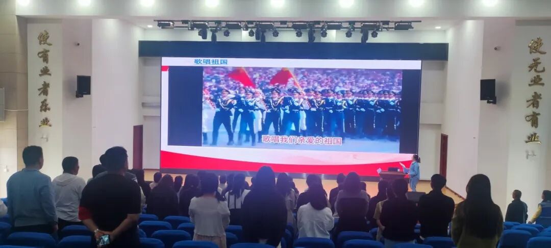 活动在激昂的《歌唱祖国》合唱声中达到高潮。全体党员齐声高唱,用嘹亮的歌声表达了对祖国的无限热爱和对党的忠诚,展现了全体党员的爱国热情和奋斗决心。那激昂的歌声,充满了力量和激情,仿佛在诉说着党员们对祖国的美好祝愿和对未来的坚定信心,也彰显了官渡区职业高级中学党总支全体党员在新时代勇于担当、积极作为的精神风貌,激励着大家在今后的工作中以更加饱满的热情和昂扬的斗志投身于教育事业,为培养德智体美劳全面发展的社会主义建设者和接班人而努力奋斗。