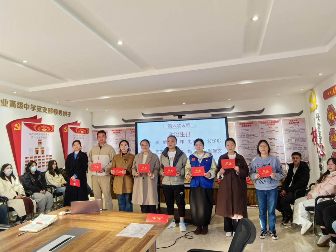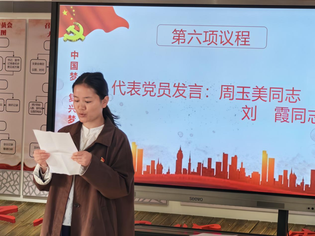 在庄重而温馨的政治生日环节,林玉芝、刘凤琴、李娟等10名党员同志依次上台,接受党总支颁发的政治生日贺卡。一支部党员代表周玉美同志发言,深情回顾入党初心,表达了对党的忠诚与为教育事业不懈奋斗的决心。