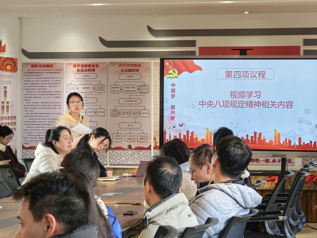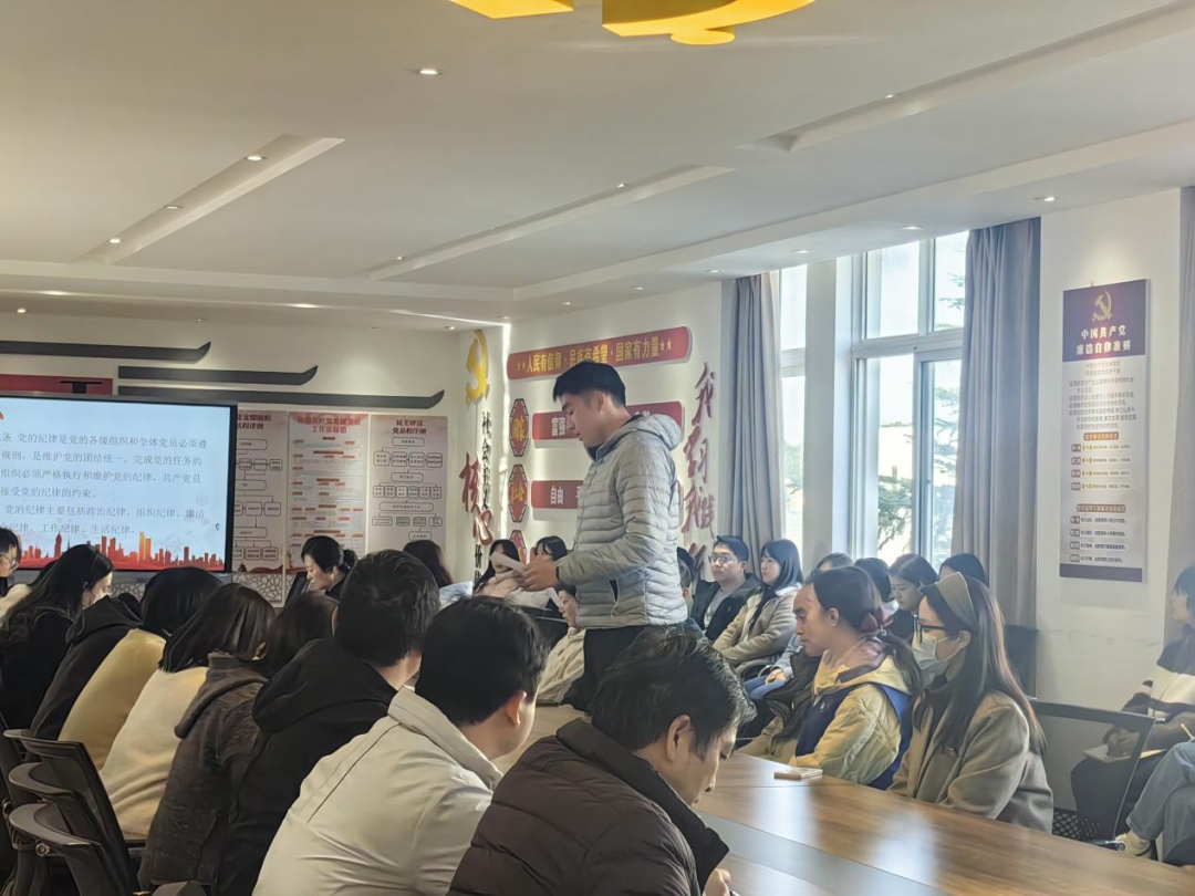 在系统学习环节,海佳文同志带领大家学习了《中国共产党章程》第七章“党的纪律”的重点内容,深入阐释党的纪律要求;张晋玮同志领学了《中国共产党纪律处分条例》第三章“纪律处分与运用规则”,结合典型案例解析,进一步强化了党员的纪律意识和规矩意识。随后,全体党员集中观看了中央八项规定精神警示教育片,并参与“锤炼党性修养,铸就高尚师魂”师德师风微课学习,推动作风建设常态化、长效化。